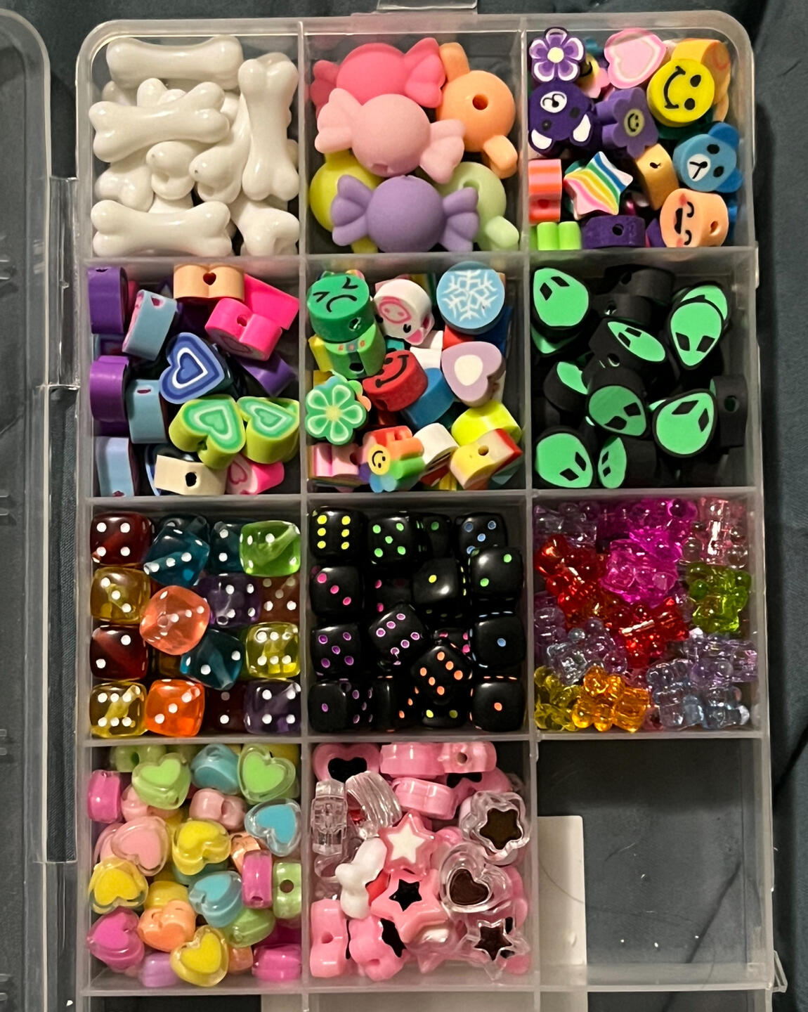 my name is bug. im 22 and located in texas. i started making kandi in may 2024 so im still learning.