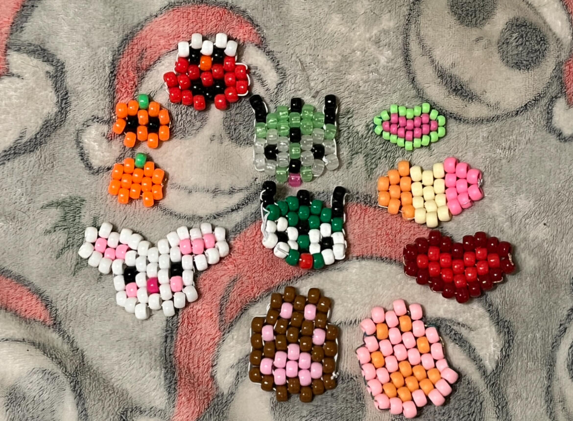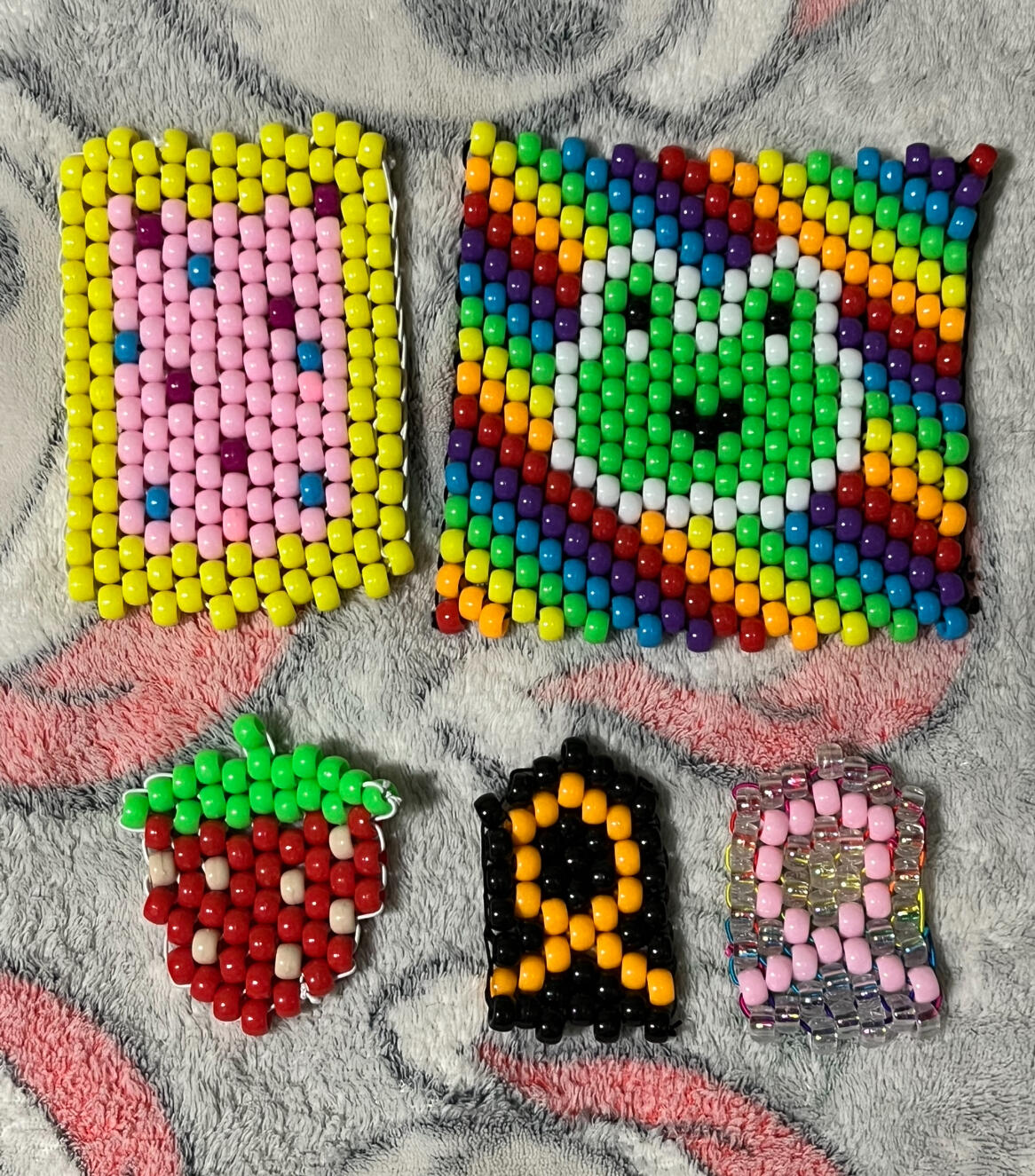 other: ask for pricei can do any designs and any colors for everything i makecan make any perler design. can make them into keychains, magnets, necklaces, bracelets, etc(shipping is $6-10 depending on package size)